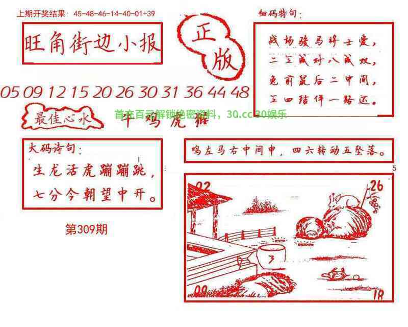 | 308期 | 龙 | 蓝波单 | 2尾 | 开兔39 |